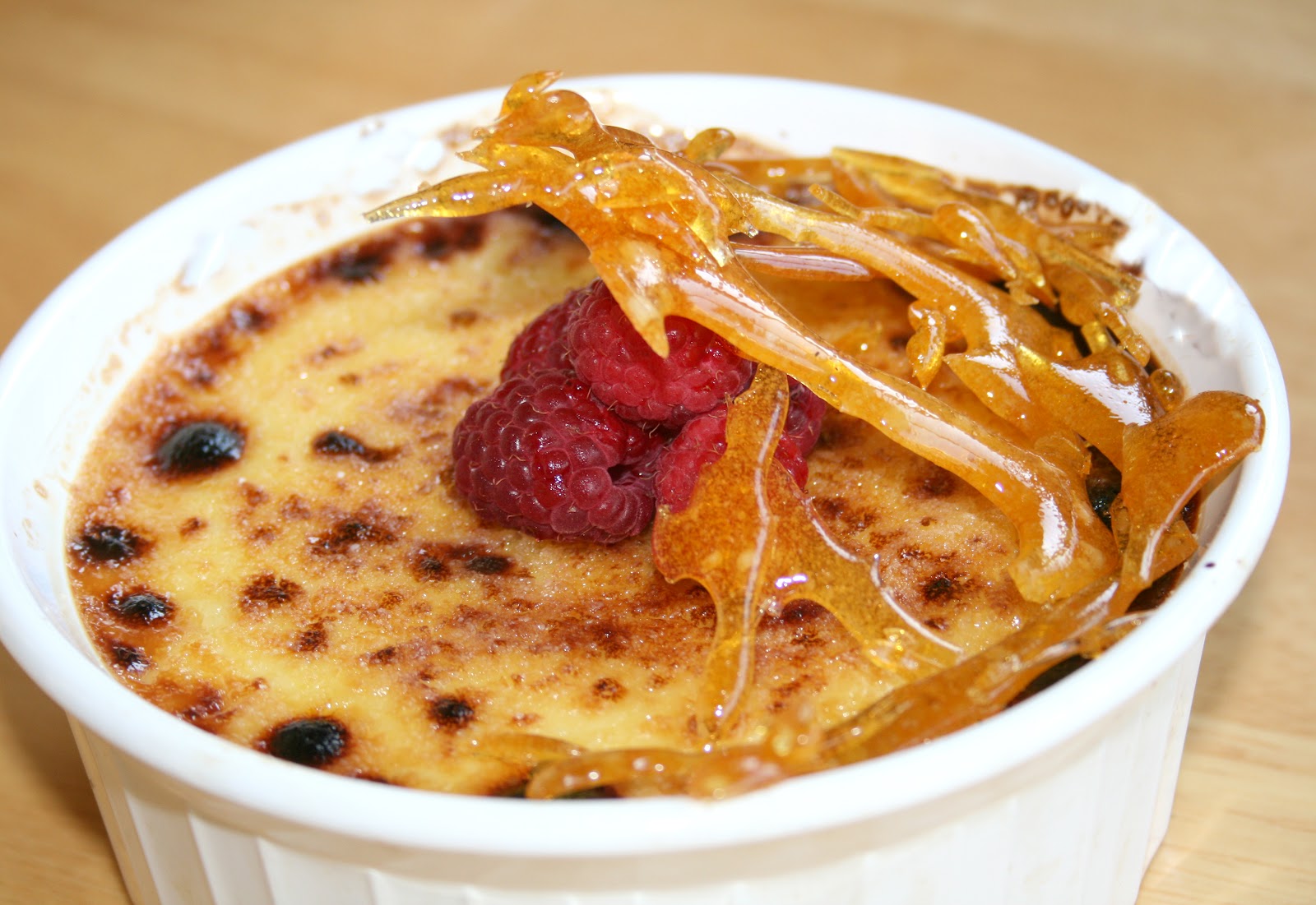 Crème brûlée je desert skládající se z custardu (žloutky, smetana, cukr) a karamelové krusty na povrchu.